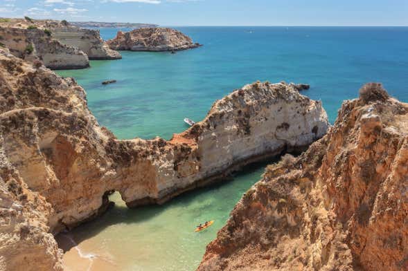 At the time of your choice, we'll meet up at the Albufeira Marina and then board a catamaran that'll take us to Castelo beach in just 15 minutes. Then it'll be time to explore the beautiful Algarve coast in a kayak!