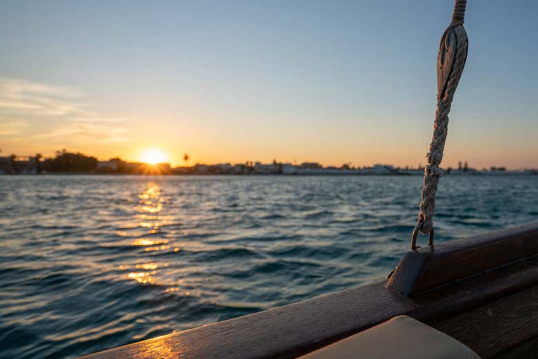 Our boat ride will continue toward Poetto Beach, which spans over 4.97 miles (8 kilometers). Meanwhile, we'll serve you an aperitif on board, including a glass of wine, cheeses, cured meats, and other local products. Slowly, you'll see how the sun hides behind the horizon. Don't forget to take a picture of the sunset!