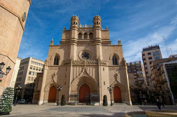The route continues in Plaza Santa Clara, a spot dedicated to leisure and gastronomy. Right next to it, we'll come across Castellón's Plaza Mayor, where we'll see the Town Hall, the Central Market of Castellón, and the façade of Castellón Co-Cathedral. As we'll see, this is a real jewel of Valencian Gothic architecture, which also incorporates elements of other styles and artistic trends. We'll also admire its bell tower: El Fadrí. Did you know that it's a symbol of Castellón?
