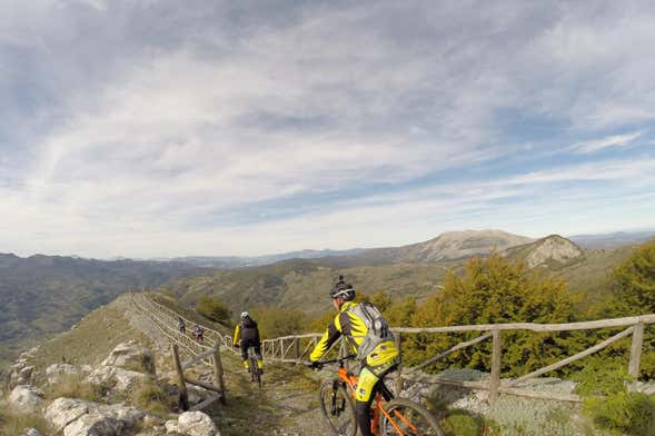 At 8:30 am, we'll meet at Piazza Piano della Corte in the heart of Castelsaraceno. There, we'll get on our electric bikes, put on our helmets and start a 40-kilometer bike ride (25 miles) through nature. Let's roll!