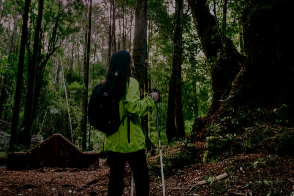 At the designated time, we'll meet at the Lodge Tepuhueico to begin this nighttime hiking activity through Tepuhueico Park. Ready? Let's go!