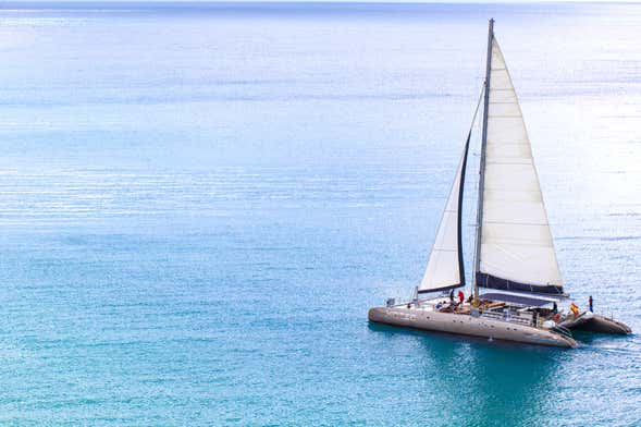 This stunning 23-meter sailboat is ideal for spending a half day sunbathing on its large sundeck and admiring the rugged cliffs and volcanic landscape the island has to offer.
