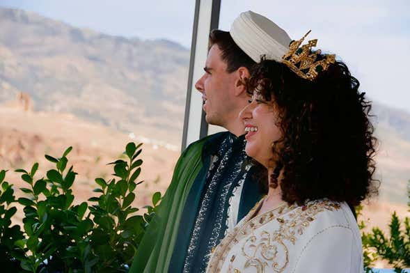 Let the festivities begin! Whether you're a gentleman adorned in a traditional modern suit or a lady wearing up to seven different dresses, including the green and gold kaftan for the henna experience or the elegant white takchita symbolizing purity—you'll definitely find your style.