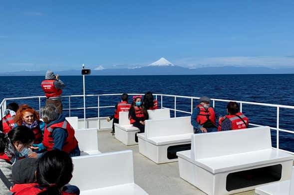 Once on board the boat, you'll experience the smooth cruising of the Bandurria Catamaran. During the trip, which includes an English-speaking audio guide, you'll be able to observe the Osorno volcano. This famous peak which gives way to the gateways of the Chilean Patagonia, holds a similar resemblance to that of Japan's Mount Fuji.