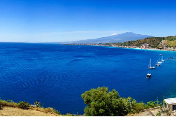During this two-hour boat ride, we'll enjoy the beautiful scenery of the coast of Naxos, with views of the historic Palace of Spuches and the promenade. We'll also pass near Taormina, where we'll see the famous Faraglioni di Capo.