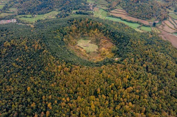 Our next stop will be the Garrocha Natural Park, in the pre-Pyrenees area. Did you know there are more than 40 volcanoes in the area? This is not the only surprising fact, as we'll approach a medieval chapel located in the middle of the crater of one of them.
