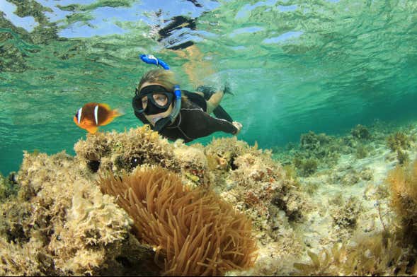 At the appointed time, we'll pick you up at your hotel in Hurghada to take you to the starting point of this exciting journey. Once on board our comfortable boat, we'll set course for Orange Bay, while the Egyptian sun accompanies us on the way. The adventure begins!