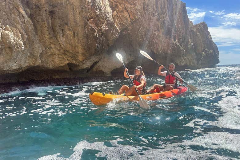 After taking in the breathtaking scenery, we’ll continue our kayak journey to the Llop Marí Cave, named after the sea lions that once inhabited it. From there, we’ll paddle toward Descubridor Island, where we’ll enjoy views of the Punta del Ambolo tower rising above the coastline.