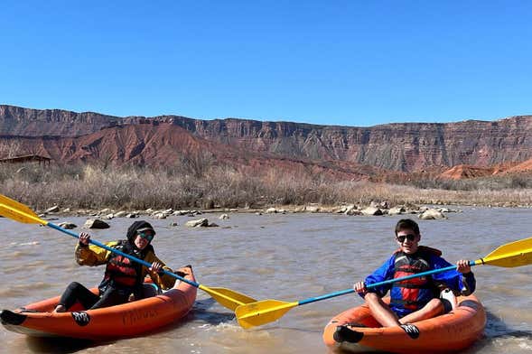 We'll head towards the river bank to hop into our kayaks and begin rowing our way down this staple of the Southwest. After rowing about 8 km (4.9 miles) we'll see the river in all its different forms: faster rapids followed by calmer waters for all of us to enjoy.