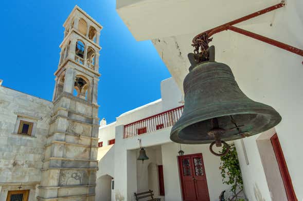 After, we'll make our way to Ano Mera, the only inland village on the island. We'll explore this picturesque corner of whitewashed houses, narrow streets and pretty squares. We'll also visit the Panagia Tourliani monastery, founded in 1542 by two monks. The monastry truly merits a visit as its the perfect example of typical Greek architecture style.