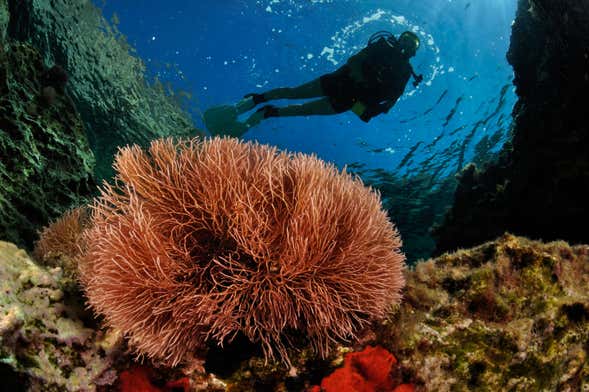 Next, we'll head to Lia Beach reef for a 40 to 45-minute dive where accompanied at all times by the instructor, we'll feel the thrill of moving underwater while admiring the great variety of sea life in Mykonos. Also, we'll take underwater pictures so that you'll get a nice souvenir out of this unforgettable experience.
