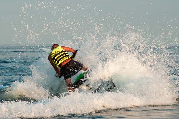 Before starting the jet ski tour along the coast of Lanzarote, you'll put on a life jacket and receive some instructions on how to do the activity safely. Now let's start the engines!