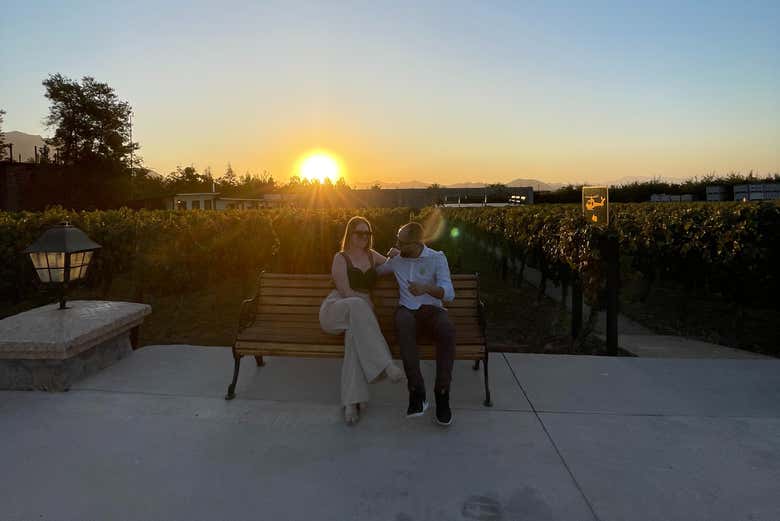 The tour will continue through the winery's vineyards, where you'll learn more about the wine-making process, and you'll enjoy another wine tasting. Afterwards, we'll make our way to a strategic vantage point to watch the sunset over the vines and mountain areas, experiencing another wine tasting as the sun disappears. You'll want to capture this moment on your cameras!