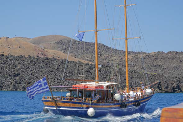 During the trip, we'll pass Nea Kameni and then Palea Kameni, the scenery of both volcanic islands is breathtaking. For 3 hours, you'll get to relax in the sea breeze and enjoy an unforgettable boat trip. At the end of the trip, we'll say goodbye in the port of departure.