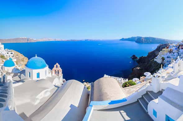 Hotel pickup is included from centrally located accommodations, or you can opt to meet at the cable car station in Fira. If you're arriving by cruise ship, the local tour company will get in touch with you to coordinate pickup details.