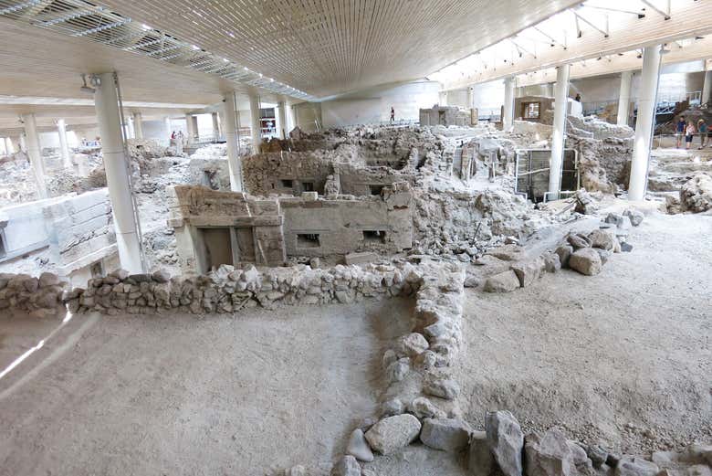 In fact, some buildings reached up to three floors with a design that gives you an idea of how the public spaces were divided in this ancient city. During your tour of Akrotiri, you'll also see some characteristic sanctuaries from the Minoan civilization and very elaborate frescoes. You'll surely be amazed!