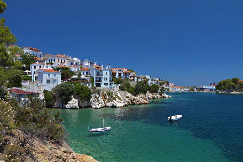 At the indicated time, we'll pick you up from your hotel to head to the New Port where we'll board our boat and set off on a pleasant cruise around Skiathos Island.