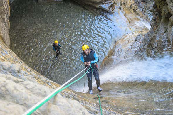 Are you ready to explore this deep and winding canyon? We'll start the tour, composed of a total of three rappel circuits, two of which exceed 24 meters (79 feet)! Of course, there'll be natural slides and, if you want, you can jump into the waters of the canyon from a height of 8 meters (26 feet).