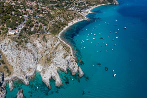 We'll sail the waters of the Tyrrhenian Sea as far as Capo Vaticano. From the boat, we'll be able to admire a stunning landscape full of coves, white sandy beaches, and small rocky bays – no wonder they call this place the Coast of the Gods!