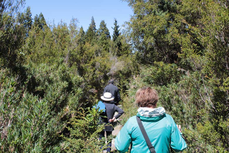 During the 30-minute trip, we'll talk to you about the flora and fauna species that can be found in Alerce Costero. The undisputed protagonist is the alerce, a thousand-year-old tree that we'll see up close on the Renovales de Alerce trail. Did you know that it's one of the longest-living trees in the world? We'll reveal all its secrets!