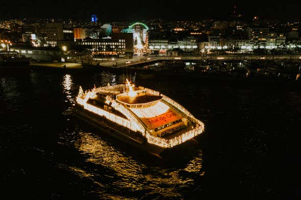 After a welcome cocktail with Christmas music from a DJ to get us in the festive spirit, you'll enjoy a nighttime tour along the Ría de Vigo on a boat completely adorned with Christmas decorations, both inside and out. Get ready to experience the magic of Christmas with tons of colorful lights, Christmas trees, festive carols, and the chance to meet Santa Claus, the Grinch, or the Royal Page of the Three Kings. You're in for many surprises!