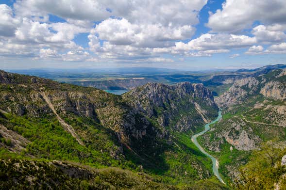 Después de comer, iremos hasta el cañón del Verdon, que nos ofrecerá unas vistas únicas del paisaje. Después, haremos una parada en el Puente de Galetas, en el pueblo de Sainte-Croix-du-Verdon y en el lago más grande del parque natural: el lago Sainte-Croix, donde podremos caminar por la orilla o darnos un baño en sus aguas turquesas.