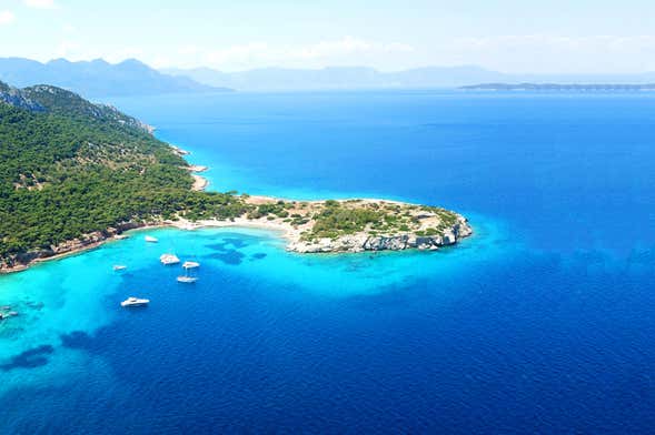 Una vez en nuestra primera parada, Agistri, os dejaremos dos horas de tiempo libre para que exploréis la isla. En este remanso de paz podréis sumergiros en las aguas turquesas de sus playas y descubrir los secretos que esconde su fondo marino.