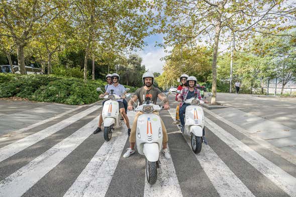 Tras el tour a pie de 1 hora, regresaremos al punto de encuentro para realizar un tour en vespa de 4 horas de duración. En esta ruta en moto pasaremos junto al mirador de los Bunkers del Carmel, el Arco del Triunfo y la Villa Olímpica. También nos acercaremos a la playa de la Barceloneta y a la colina de Montjuïc.