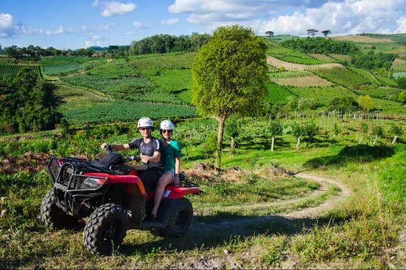 Conduciremos los quads a lo largo de los fascinantes paisajes del Vale dos Vinhedos, paseando entre los viñedos y conociendo todas las características de esta región vinícola brasileña. Además, durante todo el recorrido, liberaremos adrenalina por cada poro de nuestra piel al conducir estos divertidos vehículos.