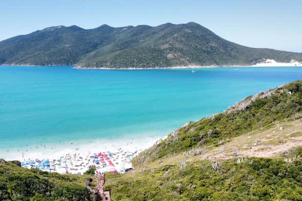 Una vez hayamos llegado a nuestro destino, nos dirigiremos a la playa dos Anjos. Aquí, nos estará esperando un barco que nos llevará de travesía para admirar la belleza de Arraial do Cabo desde el agua.