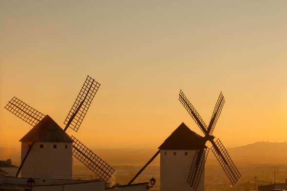 Pasearemos por la Sierra de los Molinos, un escenario de película donde se levantan varios molinos de paredes encaladas. Están declarados Bien de Interés Cultural, debido a que tres de ellos poseen la maquinaria original del siglo XVI. ¿Sabíais que algunos aseguran que estos son los que inspiraron a Miguel de Cervantes?