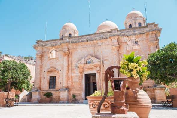 Os recogeremos en el puerto de Canea y saldremos hacia la península de Akrotiri, una de las regiones más hermosas de Creta. Una vez allí, haremos la primera parada del tour en el Monasterio de Agia Triada Tzagorolon, uno de los más bonitos de la isla griega.