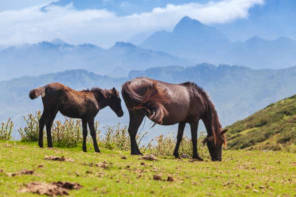 La ruta nos llevará hasta El Bustacu, un paraje ubicado a 653 metros de altura que sirve de refugio para los pastores y sus ganados. Desde aquí, comenzará el trekking de ascenso hacia el pico Pienzu. Además, con un poco de suerte, veremos algún ejemplar de los caballos salvajes asturcones que habitan estas tierras.