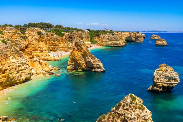 Nos reuniremos a la hora que elijáis en el Largo da Praia. Desde allí, caminaremos hasta la playa de Carvoeiro, donde embarcaremos para dar comienzo a un paseo por la costa del Algarve.