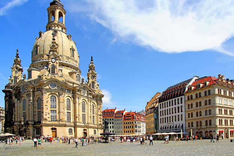 Nos encontraremos a la hora indicada en Theaterplatz. Desde esta céntrica ubicación, comenzaremos nuestra visita guiada por Dresde. Uno de sus edificios más emblemáticos es la famosa iglesia de Nuestra Señora, conocida por los alemanes como Frauenkirche. Se trata de una de las representaciones barrocas más importantes del luteranismo en Europa.