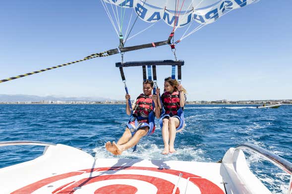 La velocidad de la lancha y los vientos harán que el paracaídas se eleve permitiéndoos alzar el vuelo hasta una altura de 50 metros. Liberaréis grandes dosis de adrenalina mientras sentís cómo flotáis por los aires frente a las increíbles costas de Mallorca.