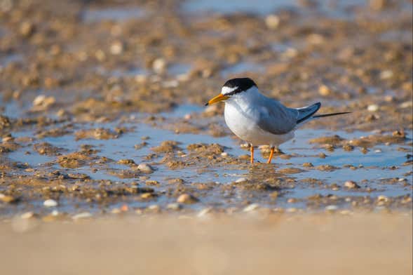 Seguiremos navegando hasta la desembocadura de la ría, donde haremos una parada para disfrutar de las vistas de este enclave y seguir observando su avifauna. Este estuario es lugar de reproducción de algunas especies como el charrancito y el chorlitejo, y en invierno, de flamencos.