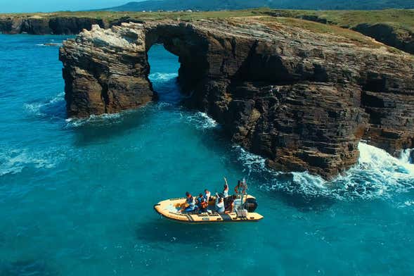 A la hora indicada nos encontraremos en la rúa Manuel Murguía de Foz. Desde aquí, embarquemos en la lancha y pondremos rumbo a la joya de la corona de la Mariña lucense: la playa de Aguas Santas, más conocida como playa de Las Catedrales.