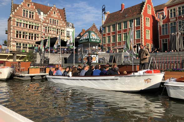 Durante los 40 minutos de travesía, exploraréis de una manera distinta el centro histórico de Gante, admirando desde el barco los rincones más especiales de la ciudad, como el castillo de los Condes de Gante, las antiguas casas sobre los muelles Graslei y Korenlei, la Catedral de San Bavón y la iglesia de San Nicolás.
