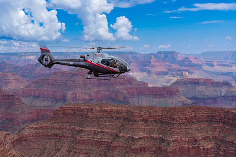 Volaremos sobre el río Colorado hacia el borde norte del Gran Cañón, una de las Siete Maravillas Naturales del Mundo. Desde el helicóptero podremos contemplar las vistas panorámicas de la Tower of Ra y Vishnu Schist. Mientras volamos a través de las secciones más anchas y profundas del Gran Cañón, seremos testigos de algunas de las capas de rocas más antiguas del mundo.
