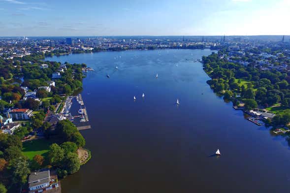 También sobrevolaremos los dos lagos de Alster: el Außenalster y el Binnenalster. Continuaremos planeando por el puente Köhlbrand, de 3618 metros, y divisaremos las casitas de madera del barrio de Blankenes. ¡No perdáis la oportunidad de fotografiar estas impactantes panorámicas!