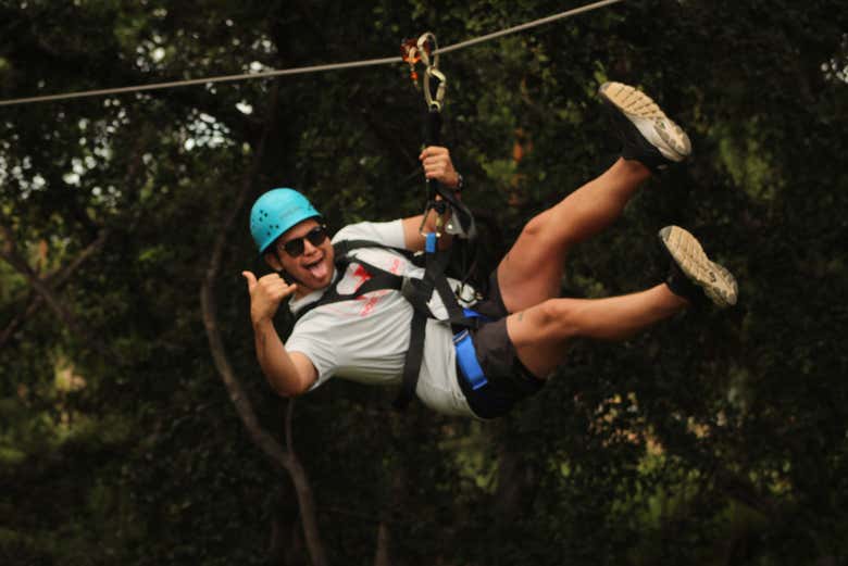 En esta modalidad disfrutaréis de un recorrido más completo con 6 tirolinas que os harán volar entre las copas de los árboles. En una de las tirolinas de esta modalidad, tendréis la oportunidad de practicar rápel desde una altura de 7,5 metros. Además, os divertiréis poniendo a prueba vuestra puntería en otra de las líneas, donde lanzaréis un objeto para dar en el blanco.