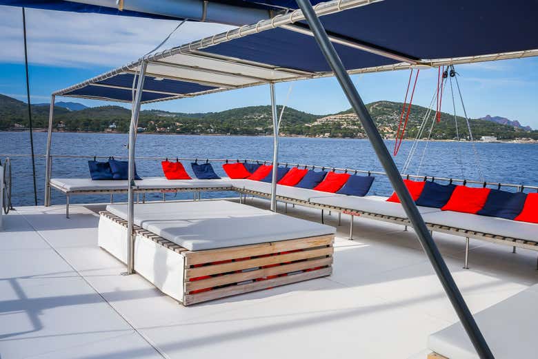 A continuación, regresaremos al catamarán para disfrutar de un delicioso almuerzo a bordo. El menú incluye ensalada, paella valenciana, fruta fresca y una bebida, a elegir entre agua mineral, refresco o cerveza. Después de comer, podréis relajaros en la cubierta y bailar con la música ambiente del barco.