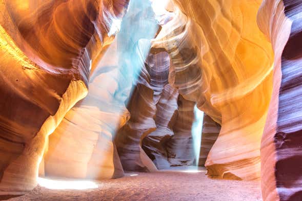 Nuestra primera parada será en la reserva de los indios navajos, donde cogeremos un vehículo 4x4 hasta la entrada del Cañón del Antílope. Dependiendo de las condiciones meteorológicas, de la disponibilidad o de la temporada, visitaremos una de las zonas del Cañón del Antílope: los cañones Upper, Lower o X. Sea cual sea la opción, todas ofrecen unos espectaculares paisajes dignos de postal, una imagen increíble, cincelada a lo largo de millones de años por la erosión. Durante una hora y media, caminaremos por los desfiladeros y disfrutaremos de la magia de este lugar.
