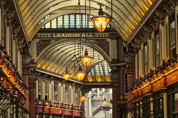 En esta modalidad, haremos el mismo itinerario descrito en el apartado anterior. La gran diferencia será que continuaremos el trayecto en metro hacia el Leadenhall Market, un emblemático mercado en el que se rodaron algunas escenas que recreaban el Callejón Diagón. En Harry Potter y la piedra filosofal, el joven mago acude a este lugar para comprar su varita. Esta calle también es muy conocida en la saga por albergar un popular pub entre los magos: El Caldero Chorreante.