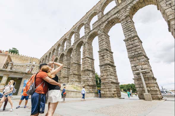 La siguiente parada tendrá lugar en Segovia. Por supuesto, veremos el Acueducto, uno de los monumentos mejor conservados de los que dejaron los romanos en la península Ibérica. Contemplaremos la Catedral de Segovia, conocida popularmente como "la Dama de las Catedrales" por la sorprendente belleza de su estilo gótico con influencias renacentistas.
