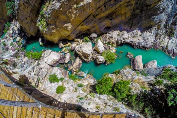 Una vez allí, os daremos el casco de seguridad y, a continuación, nos adentraremos en este entramado de pasarelas de madera para descubrir uno de los lugares más especiales de la provincia de Málaga. ¿Sabíais que algunas de estas pasarelas se encuentran a más de 100 metros de altura sobre el río Guadalhorce?
