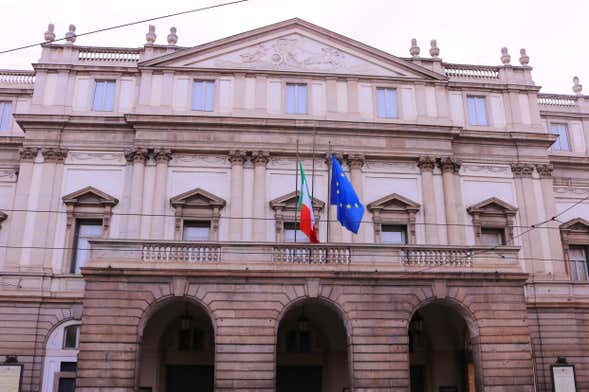 Terminaremos la visita regresando a la entrada principal del teatro, el más famoso de Lombardía y uno de los "templos musicales" más importantes de Europa.
