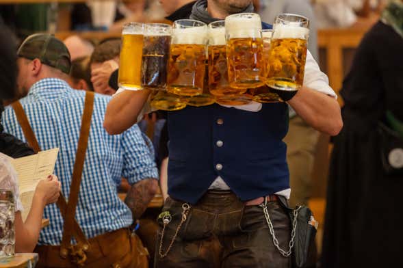 Nos adentraremos en uno de las pabellones y tendremos la suerte de deleitarnos con dos cervezas de un litro cada una y un plato principal, ¡al más puro estilo bávaro!