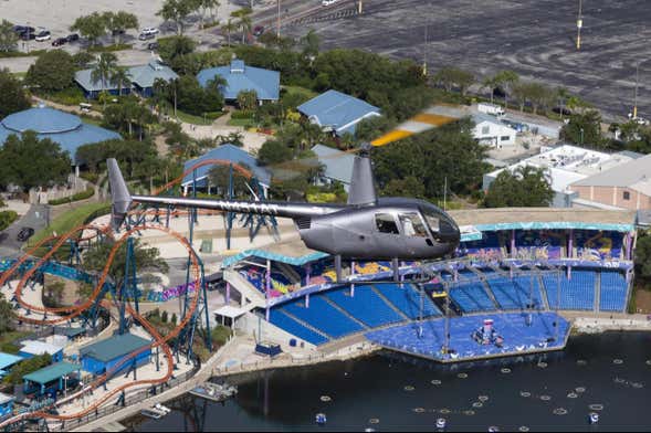 En este paseo en helicóptero, recorreremos aproximadamente 48 kilómetros de la extensión de Orlando y sus parques. Durante 20 minutos de vuelo, contemplaréis todos los parques temáticos de la ciudad, entre los que no faltarán Gatorland, SeaWorld, Aquatic, Discovery Cove, Universal Studios, Island of Adventures o Volcano Bay.